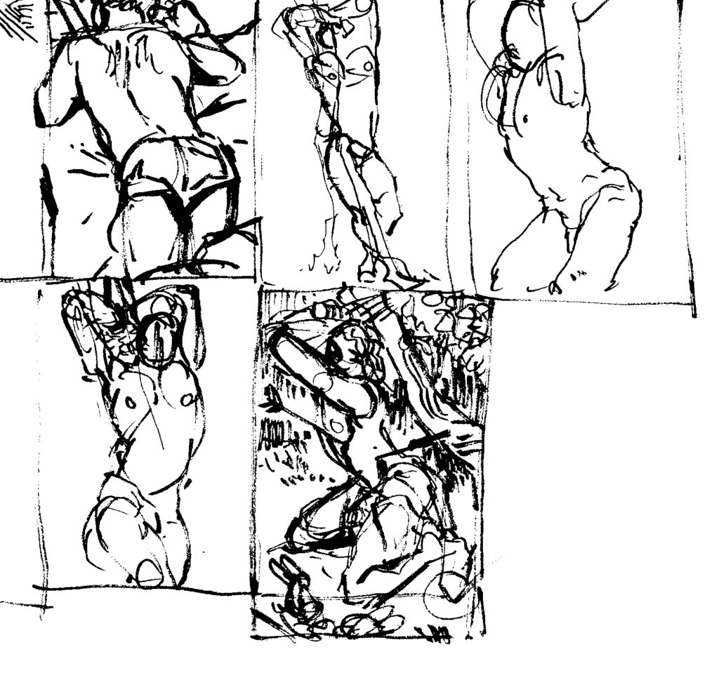 Sketching out ideas for a St. Sebastian piece- if I’m working on a Lucifer pinup and redoing that Jesus piece, might as well round out the set, right? :B