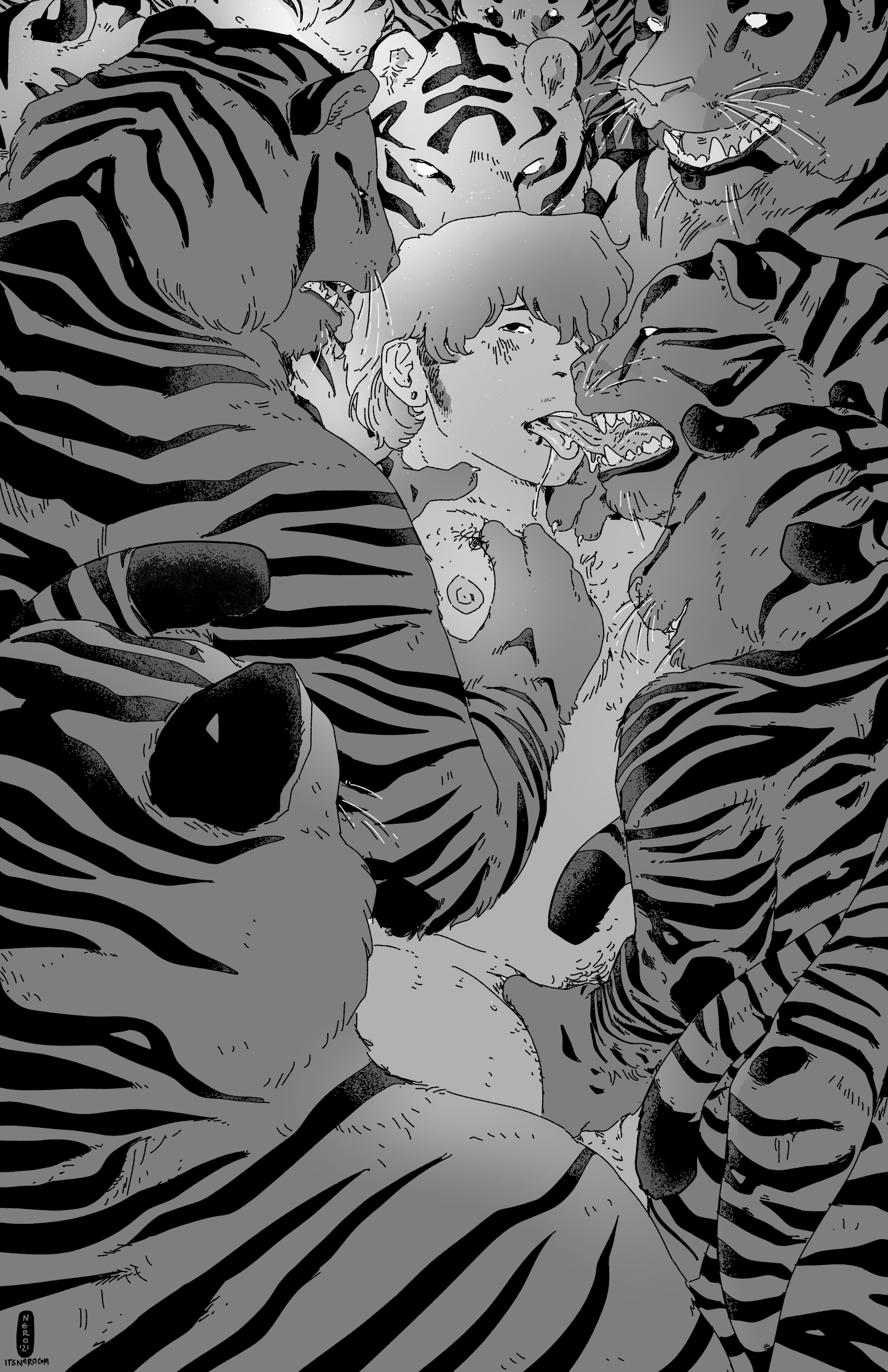 Ended up flipping the comp and finishing this sketch. I still want to try alt takes on this idea again, but also I really wanted to ink those stripes, so…!