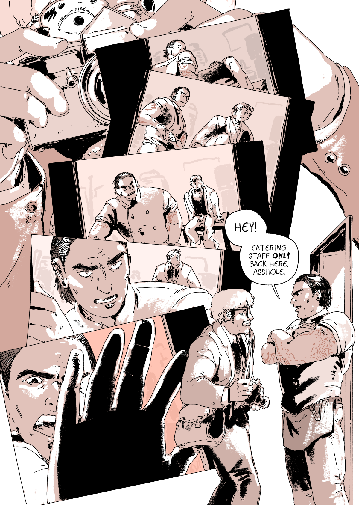 The original ver of this was more aggressive, with Daz grabbing Wyatt’s shirt- we toned it down a bit on editorial request. I kind of like this version a little more, even if it was a VERY satisfying looking shirt grab.