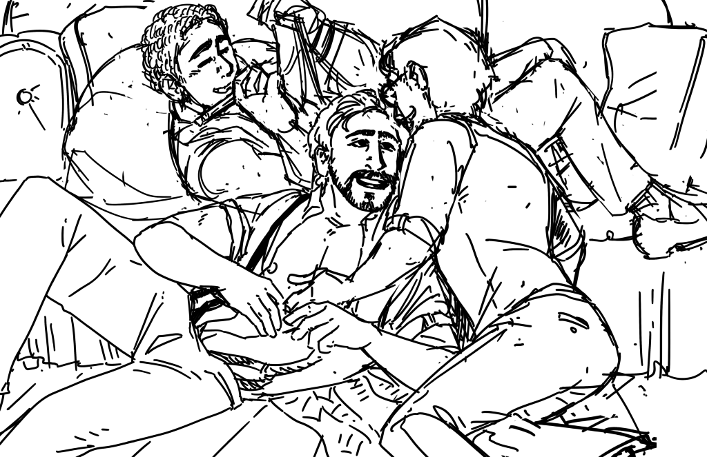 Final sketch for a commission for the same friend who purchased the Luccino/Otávio piece, of some other characters from the same show. I’m giving it a similar treatment to the other one with traditional ink + inkwash.