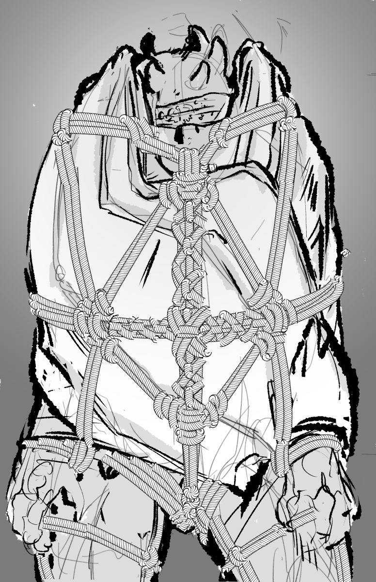 Finally doing a sequel to that one old shibari piece that goes around every once in a while on social media. Might do a blue or purple set of ropes this time while still keeping the demon in greyscale.